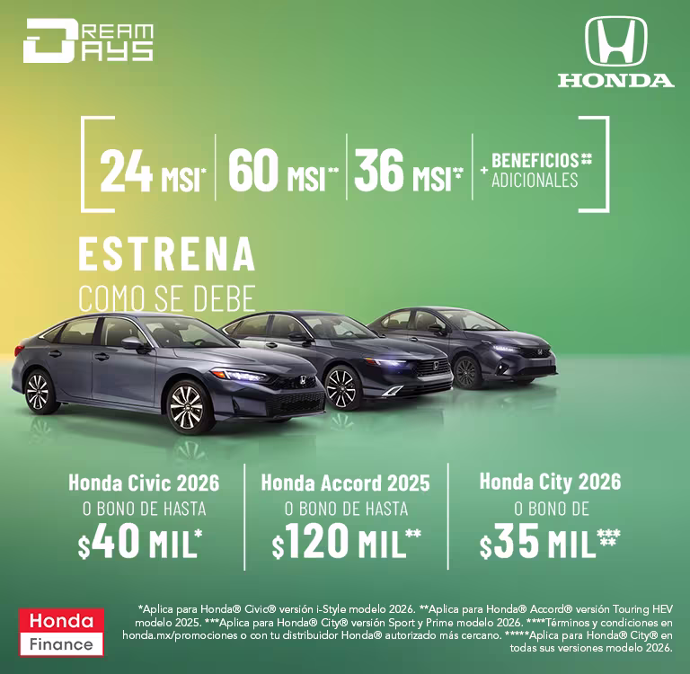 Su información personal será utilizada para proveerle los servicios y productos que ha solicitado, informarle sobre cambios en estos y evaluar la calidad del servicio que le brindamos. De igual manera, sus datos serán utilizados para el seguimiento de financiamientos, notificaciones de garantías, campañas de seguridad (Recalls) y la actualización de su historial como cliente en coordinación con Honda de México, así como para evaluar la calidad del servicio de la PÁGINA.